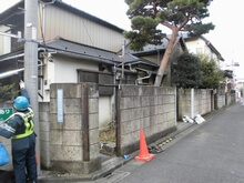 木造3棟の解体工事でした。現場がバス通りに面しており、また小学校の真裏だったため搬出に気を使いました。1棟はクリーニング店で軒先に設置してあるパラペットが鉄骨で出来ていたため一気にたおして細かくして撤去していきました。敷地内にかなり深い井戸があり埋め戻しに砂利を10m3ほど使いました。約3週間で作業終了です。