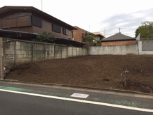 木造2階建ての解体工事でした。敷地いっぱいに建物が建っており、前面のブロック塀を撤去しても重機を入れるスペースがなかなか確保できず、夏の暑い中3分の1を手壊しで撤去を行ったため熱中症に気を付けながらの作業でした。また、基礎の解体に入る前に台風が接近したため予報が雨の前日は土嚢をつんで土が流れないよう処置をしておきました。狭い前面道路で車輌の出入りでご近隣の方にはご迷惑をお掛けするところでしたが皆さんご協力的で大変助かりました。約4週間で作業終了です。